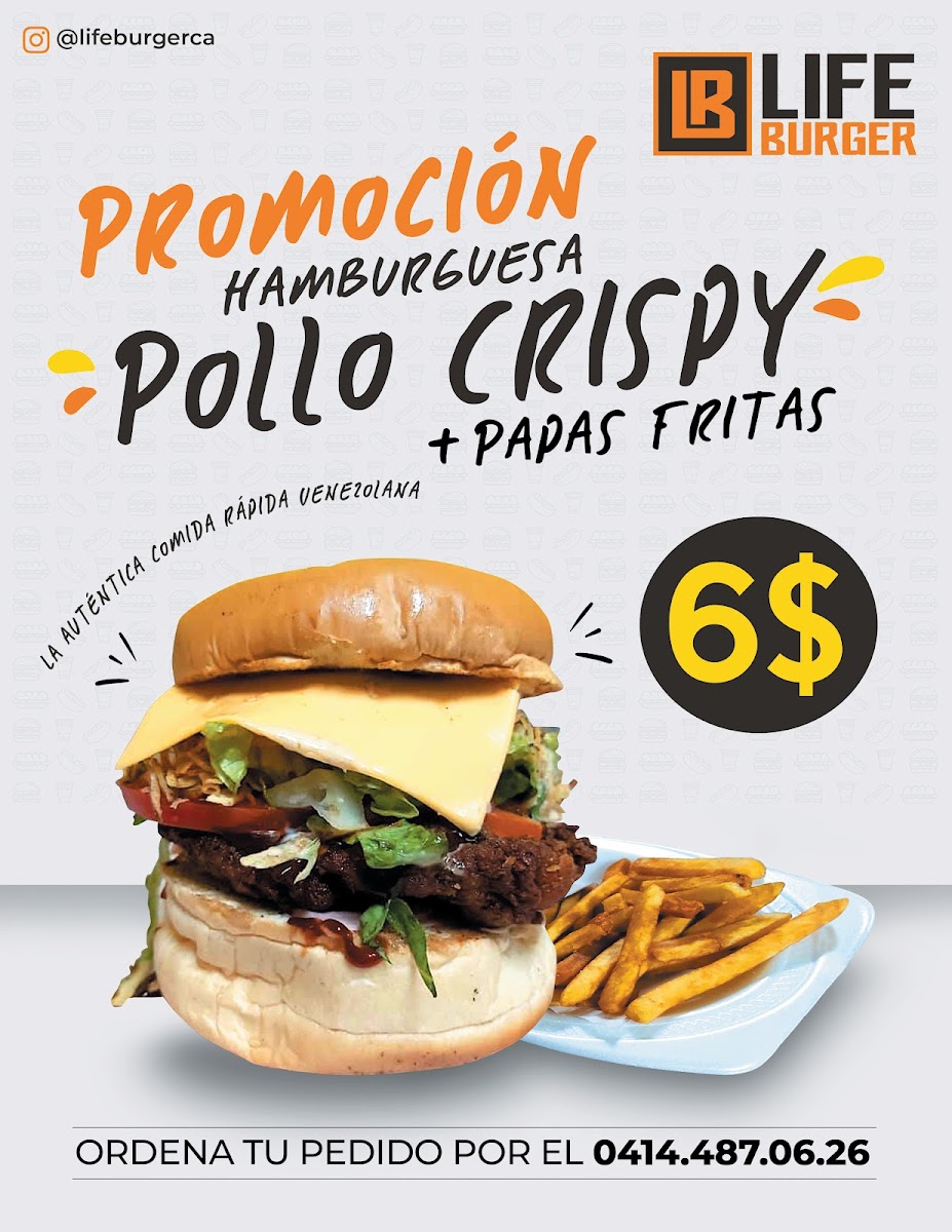 As a reviewer wrapping up your experience at Life Burger in Maracay, the menu delivers a satisfying blend of indulgent burger craftsmanship with fresh, quality ingredients. Highlights include the Hamburguesa Pollo Crispy, where juicy, perfectly breaded chicken meets a soft, well‑toasted bun and is paired with crisp toppings and fries, showcasing the kitchen’s skill in balancing texture and flavor. True to the establishment’s promise of Ingredientes Frescos Y de Calidad, each bite feels vibrant and thoughtfully composed, from cool lettuce and tomato to rich cheese and crunchy sauces. Whether you’re drawn to their signature crispy chicken creations or exploring other house favorites, Life Burger’s menu consistently reinforces a commitment to taste and freshness that leaves a memorable impression.